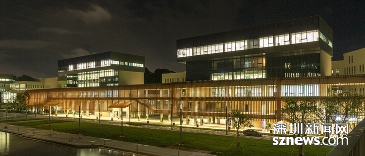 港中大(深圳)的一期新校园分为上园、中园、下园三个部分,校园空间与建筑既彰显了中国元素又体现了西方韵味。香港中文大学(深圳)校园设计贯彻了“山、林、院”的空间组织理念——保留山体,尊重生态;交叉状的教学大楼沿龙翔大道而建,形成一个半通透的屏障,隔滤了马路与城市的繁忙,为校舍与山体间的林荫中轴营造宁静的氛围;建筑营造了很多人性化尺度的庭院空间,将林荫中轴的绿化延伸到大楼内,亦为师生提供舒适的休憩活动空间。或者在草坡上举行学术论坛,或者在树下的茶座探讨问题,让学生在大自然中体会自由的学术文化。