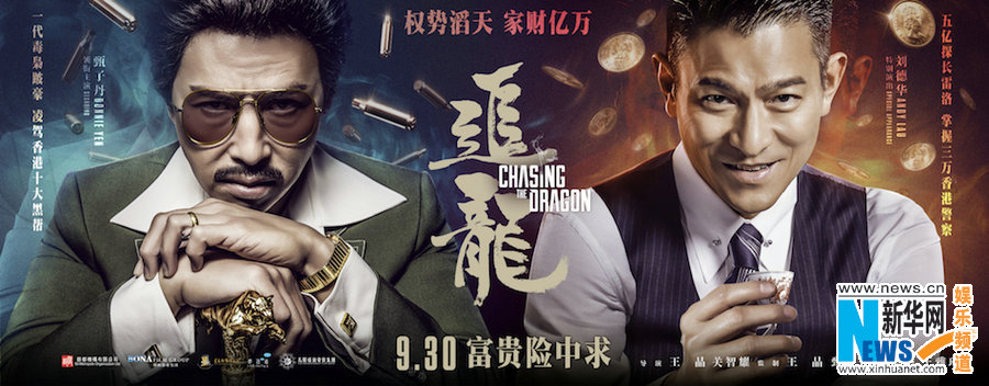 由银都机构有限公司、博纳影业集团股份有限公司、星王朝有限公司、梦造者娱乐有限公司、太阳娱乐文化有限公司出品的《追龙》,由甄子丹、姜皓文、郑则仕、刘浩龙等主演,刘德华特别演出。甄子丹刘德华首次联手重现经典传奇“跛豪”“雷洛”,一黑一白两大势力如何“富贵险中求”?9月30日,两手遮天,邀您来战!
