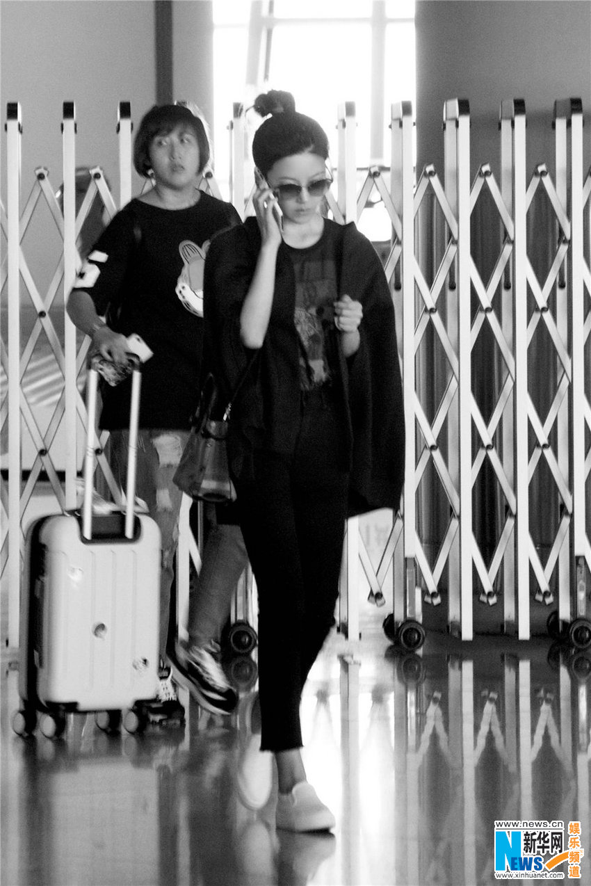 杨子姗丸子头素颜低调随性 机场偶遇赵薇