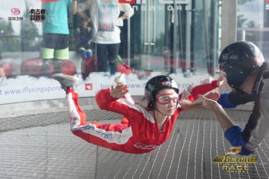 上一期,王丽坤扮七仙女惊艳全场,此番来到新加坡ifly这一世界上最大的室内跳伞垂直风洞,倒真是体验了一把“天外飞仙”的感觉。因为有过舞蹈经验再加上平时酷爱健身,王丽坤一进入风洞就如鱼得水,身姿轻盈的她飞舞盘旋,演绎现实版仙女下凡腾云驾雾,令风洞外的郑元畅秒变迷弟,隔着玻璃为队友打call:“仙女,仙女!”