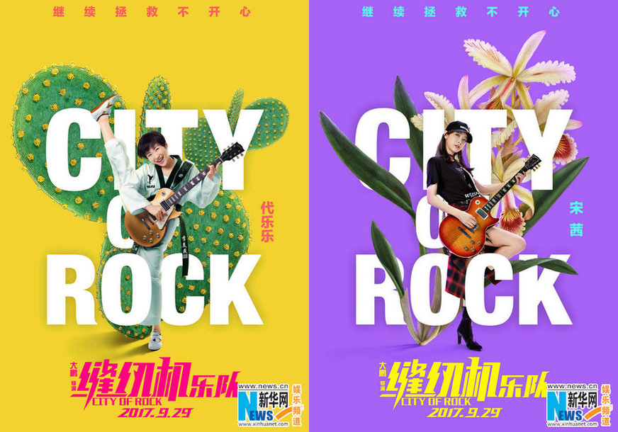 周冬雨怀抱电音吉他,花臂纹身摇滚范儿十足,身后的“芦荟”则暗示了这一重要角色高冷而神秘的性格,也正是因为这位贯穿全片的“神秘人物”,缝纫机乐队才得以完整地组建起来;袁姗姗与导演大鹏二度合作,此次在影片中“重操旧业”,一身黑T和牛仔裤的装扮简单而不失风情,身后的“玫瑰”似乎暗示了这一角色平凡身份之下蕴藏的美丽;代乐乐身着跆拳道服,腰间黑带和一字马尽显霸气,但性格却如“仙人掌”一般外表带刺内心柔软,此番她将在电影中一显身手,“威震”乐队;而宋茜棒球帽加格子短裙的装扮,恰如身后的“兔耳兰”一样,酷劲十足而不失灵气,这次她在电影中会大秀舞姿,化身经纪人程宫的“秘密武器”。而四人各自怀抱的乐器,也正寓意着在缝纫机乐队追逐音乐梦想的同时,这几位别具个性的女孩们,也在为各自的梦想而努力生活着。
