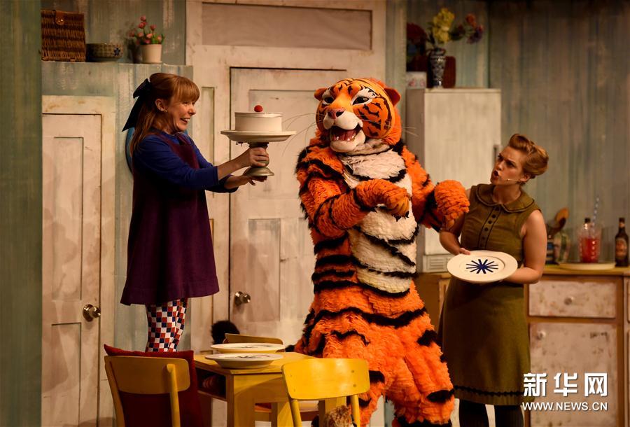 9月9日,演员在儿童剧《老虎来喝下午茶》中演出。当日,作为2017国家大剧院国际戏剧季“儿童启迪”板块的重要组成部分,英国经典绘本改编儿童剧《老虎来喝下午茶》在国家大剧院上演。这部经典儿童剧是根据英国知名图画书作家朱迪丝·克尔创作于1968年的同名绘本改编而成,讲的是苏菲和妈妈在家喝下午茶时,一只又饿又冷的老虎来到家中,受到苏菲和妈妈热情款待的故事。新华社记者罗晓光 摄