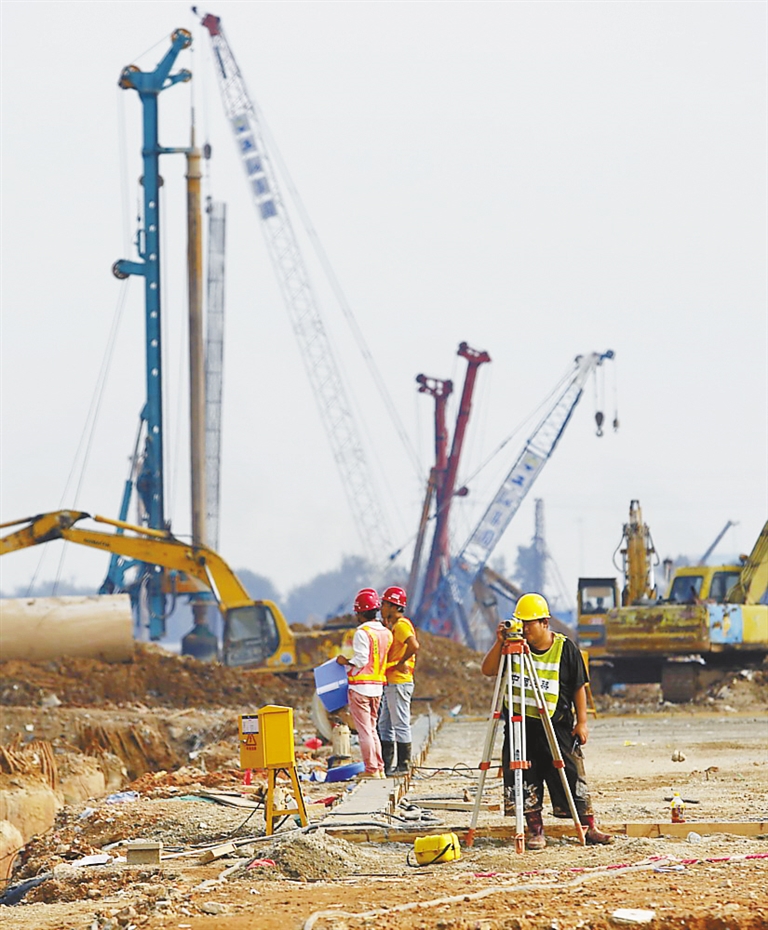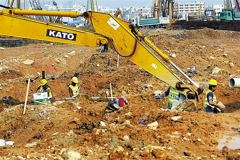 近日,深圳商报记者来到深圳市政建设中的重大工程——深圳国际会展中心进行了一次高温大工地式的体验。只见工地上全部是基坑支护和桩基础施工,打桩、焊接和运输正火热进行中。平均每天有3000余工人,大小桩基车及各类运输车辆300多台,使这火热庞大的工地上呈现一片繁忙景象。
