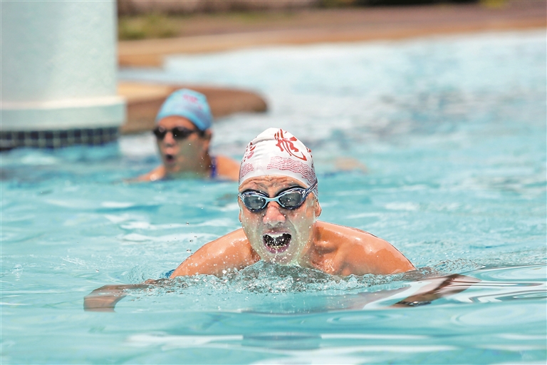 刘明益老人在蛇口生活,他总去青青世界练习游泳。