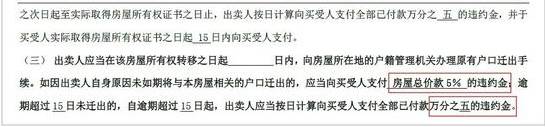 在合同里也要明确逾期户口迁出的违约金问题,一般的中介合同中,都会在“权属转移登记”中作出详细约定: