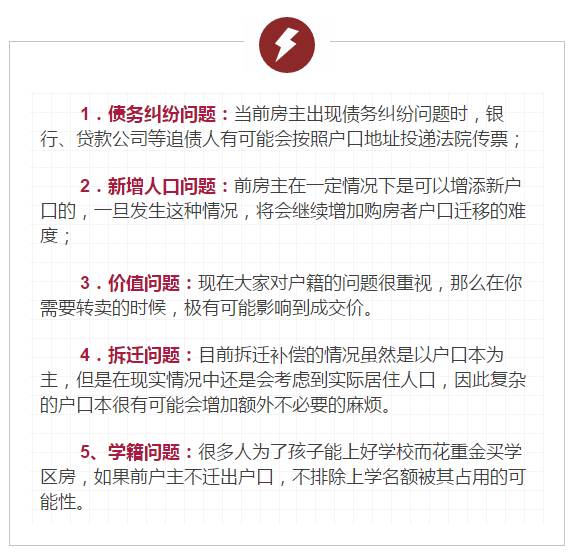很多人会认为前房主的户口不迁出没有什么大问题,但实际上却隐藏了很多风险: