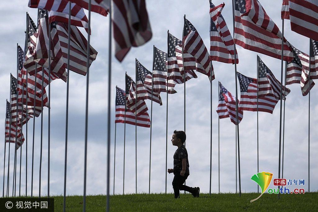 美国大学草坪插3000面国旗 纪念911大爆炸遇难者