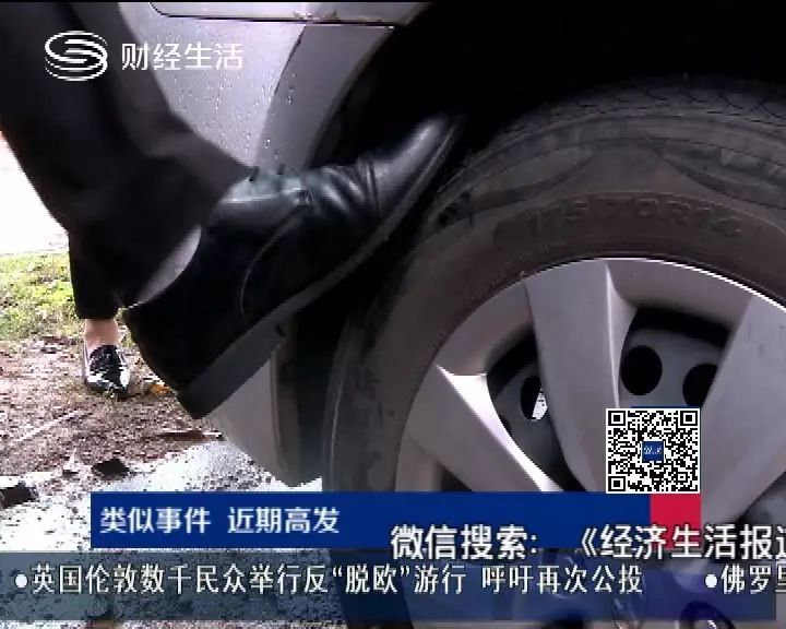采访现场,李女士有十几名同事都跟记者反映,他们都有汽车轮胎被扎或是车身被划的经历,都是集中在最近这几天,这栋楼一楼的一间汽车修理店铺的生意那是直接被带火了。