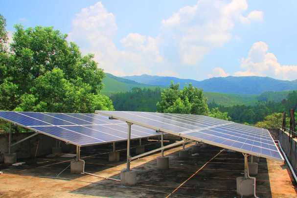 目前该项目已完成一期建设,在安全小学楼顶完成多晶硅太阳能光伏组件及相关光伏发电设备系统及电气安装调试,完成并网验收投运,装机容量43KW。