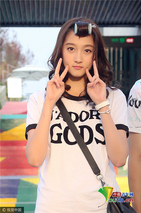 关晓彤顶卷刘海神器受访不怕羞 比二卖萌青春活力