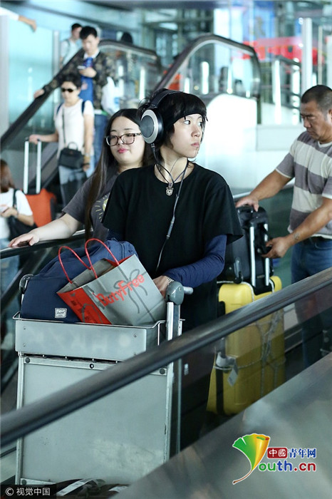 9月12日,窦靖童现身机场。窦靖童拿着大包小包,一路自己推行李,十分独立。她更是“单手拎纸箱”,十足怪力giri。窦靖童一身酷炫黑衣,戴着耳机和发带,演绎酷少女风。