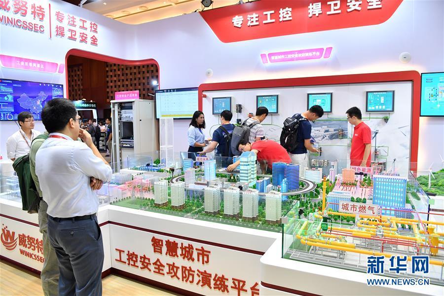 9月12日,参会者在大会展区了解智慧城市工控安全攻防演练平台。新华社记者 李鑫 摄