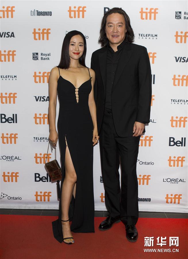 9月13日,在加拿大多伦多,导演兼演员赵汉唐(右)、演员江一燕在出席电影《七十七天》北美首映新闻发布会前合影。当日,中国极地探险电影《七十七天》在加拿大多伦多举行北美首映新闻发布会,导演兼演员赵汉唐、演员江一燕到场为影片宣传。新华社发(邹峥摄)