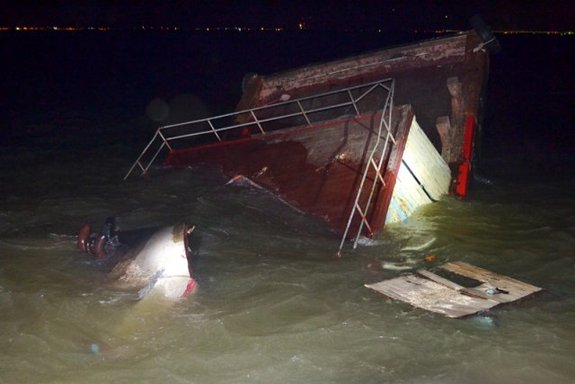 ▲边防官兵与执勤快艇在事发海域值守直至渔船完全沉没