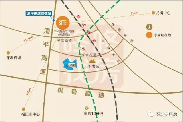 该项目西邻清平高速,北临平大路,地处福田、罗湖经济辐射圈。距华南城3公里,临近地铁10号线平湖枢纽站。
