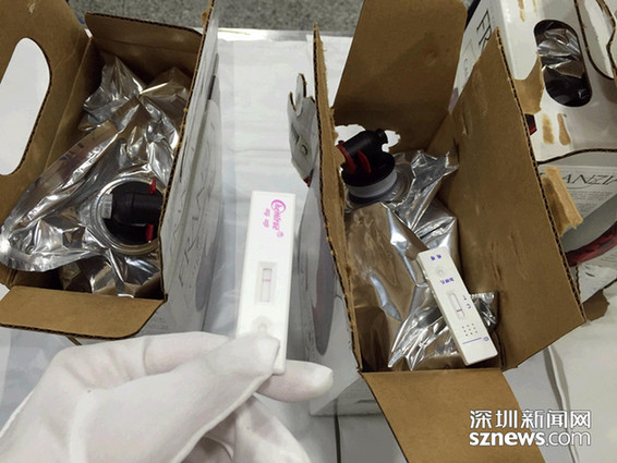关员打开一袋“红酒”,里面散发出的并不是红酒的酒香味,而是一股止咳水的特有气味。关员立刻警惕起来,用试纸进行鉴定。经过初步鉴定,这3盒共计13.97千克的袋装“红酒”,实为含有可待因等违禁成分的“止咳水”。