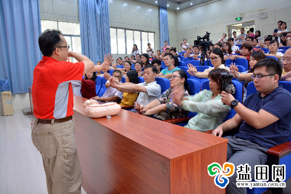 据悉,中国每年有54.4万人因心源性猝死,居全球之首,同发达国家相比,我国民众急救培训普及率低下,急救知识和技能培训意义重大。吴医生以专业精神,通过多媒体和现场演示的方式,重点讲解心肺复苏、人工呼吸和AED体外自动除颤仪的使用,全面展示了突发事故的现场救助流程和急救技能。讲座还穿插了包括骨折的固定与搬运、癫痫患者及烧伤烫伤处理的基本常识。讲解清晰明了,生动活泼,引起了老师家长们的浓厚兴趣。在讲解完毕后,老师们争相利用人体模型进行练习操作。