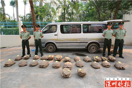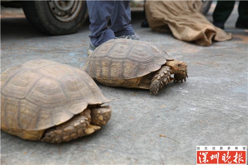 9月17日,广东海警一支队在深圳查获涉嫌非法走私珍贵动物货物一批,经检查为苏卡达龟24只,属珍贵动物。