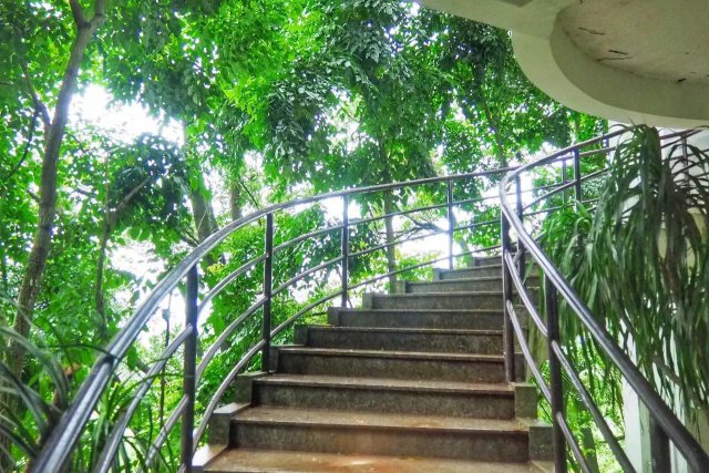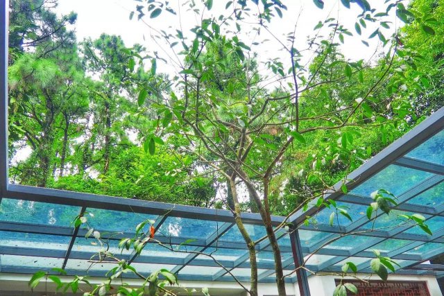 抬头望向玻璃窗顶,居然有一块是镂空的,