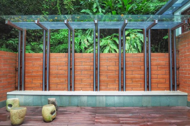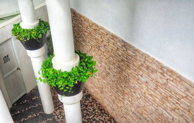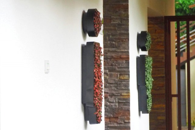 用不锈钢材质为轮廓,内种植垂直绿化,