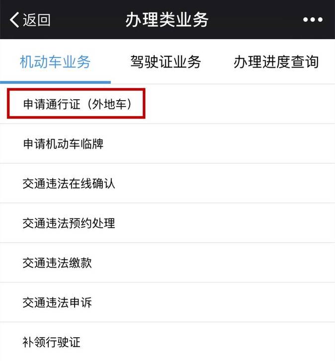 办法二:关注“深圳交警”微信服务号,进入“办理类服务”-“ 申请通行证(外地车)”,按要求填写资料并提交即可。