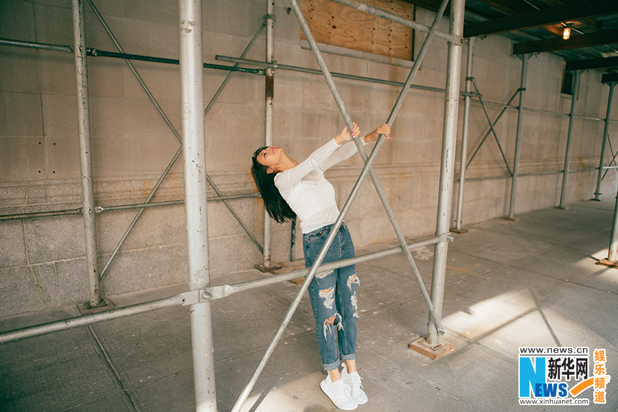 张嘉倪晒纽约街拍 活力俏皮满满少女力