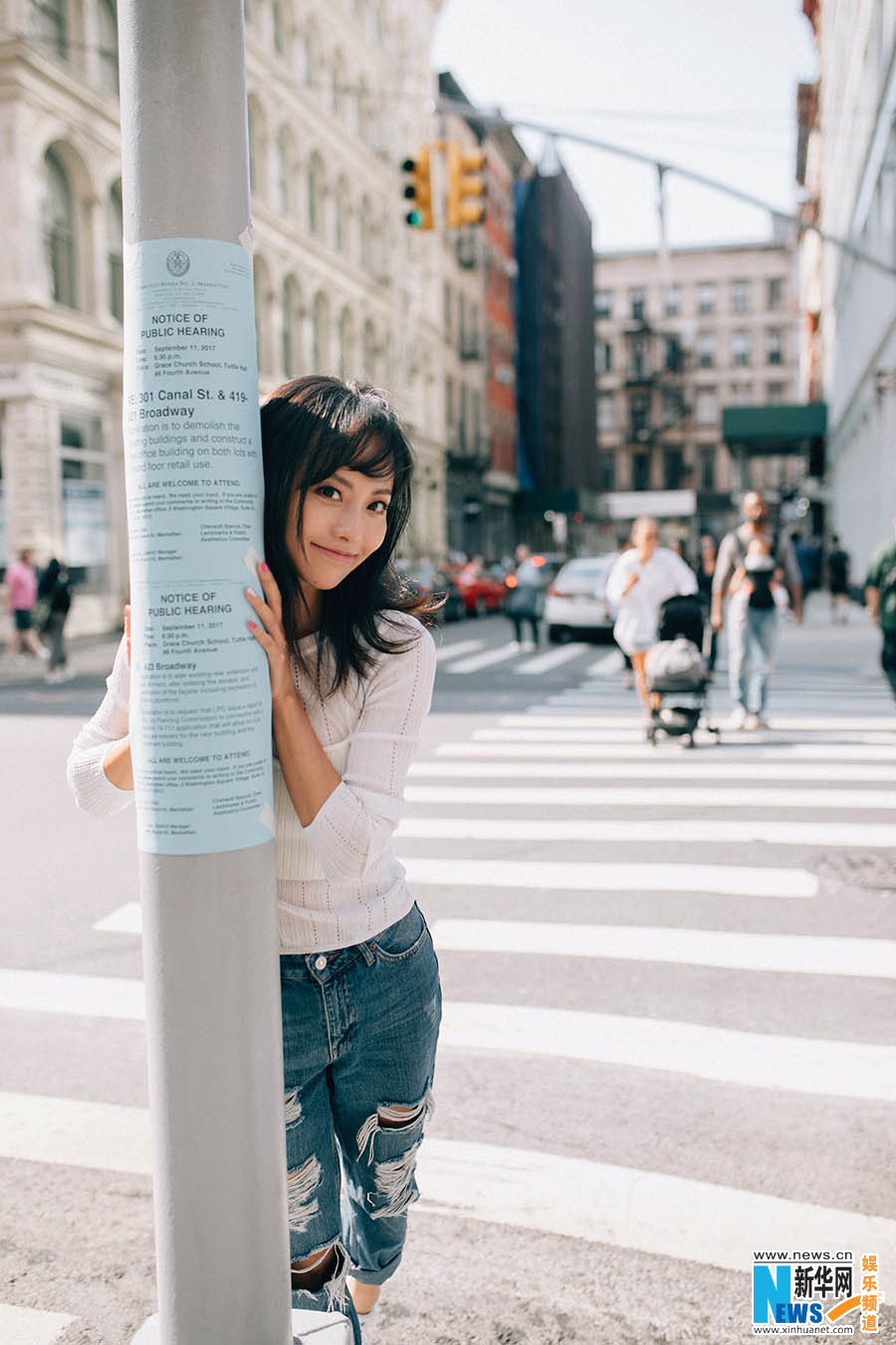 张嘉倪晒纽约街拍 活力俏皮满满少女力