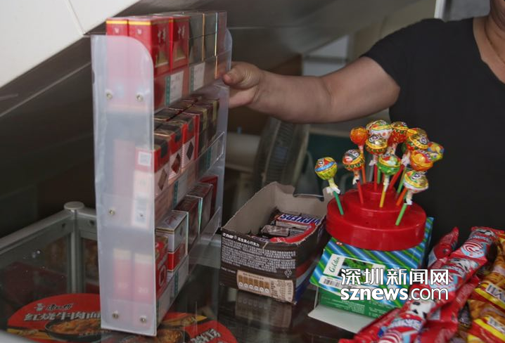 在候车室的小卖部,执法人员发现小卖部将烟摆放在货柜显眼位置售卖。