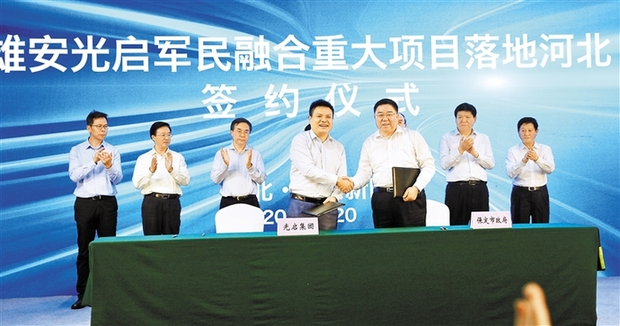 雄安新区首个产业创新发布会聚焦军民融合。9月20日,雄安光启军民融合重大项目落地河北签约仪式在雄安新区容城县举行,雄安光启军民融合创新中心正式成立,光启超材料前沿技术研究院和光启新型发动机先进技术研究院拟在雄安新区规划成立。这也是深圳创新企业参与雄安新区建设的最新动作。