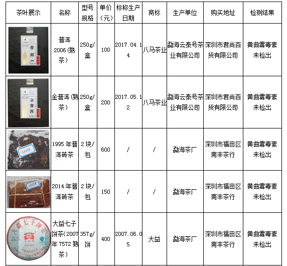普洱茶中到底有没有黄曲霉毒素?为回应消费者关切,深圳市消费者委员会(下简称深圳市消委会)和坪山区消费者委员会共同委托深圳市品质消费研究院开展普洱茶试验,由深圳市计量质量检测研究院对普洱茶中黄曲霉毒素的检测。9月21日,深圳市消委会公布结果称,此次模拟消费者在商超和茶叶市场购买进行检测的十款普洱茶中,均没有检出黄曲霉毒素。