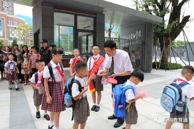 开学第一天,留仙学校、南山文理实验学校校长吴希福将印有学校照片的心形许愿卡和企鹅吉祥物一起送到了每一个孩子手中,孩子们掩饰不住的喜悦和兴奋,全化成了脸上的笑容。创校开学典礼上,家长谢希红开心地表示,无论是在西丽二中借址办学,还是进驻新校,留仙学校的诞生和成长都让人满心欢喜。