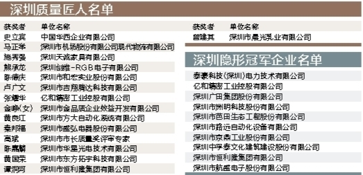 活动也为航盛电子、泰豪电力、亿和精密等10家企业颁发深圳隐形冠军牌匾和证书。据悉,这10家企业重视质量,专注研发和创新,富有匠人精神,多年坚守在一个细分领域,做出了令人敬佩的成绩和成效,却“鲜为人知”,是实至名归的“隐形冠军”。