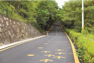 在当今社会中,自行车以其低碳、环保、绿色的特点迎合了现代人的健康生活理念,逐渐从过去单纯的代步工具发展成为时尚健身的“好搭档”,自行车竞速同时也成为一项广受欢迎的竞技赛事。盐田港区后方陆域山海通廊以自行车运动为设计理念和思路,在全长9.48公里的通廊上打造了长度为3.6公里自行车精品赛道,使通廊在功能上将不再局限于生态、休闲,还可以作为体育竞技场地。记者现场观察到,赛道在起点和终点都分别设置了相应提示,路面上标注有箭头、数字表示行走路程方向和长度,一侧的明黄色波浪状护栏更是为赛道增添不少运动气息。此外,通廊沿途还配套建设了观景台、自行车停车架、可供休息的凉亭座椅等,满足市民群众的不同需求。