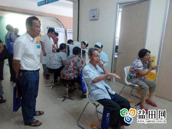 在检查过程中,社工细心照顾着老人,帮老人挂号,协助医生给老人一项项检查,从视力测试、白内障检查,再到抽血、血糖血压、心电图等多个常规体检项目。由于眼科检查和常规体检有所不同,在等待眼科检查的老人较多时,社工建议老人先进行常规体检,同时不断与老人交流,了解老人的眼睛情况,以对社区老人的情况有了进一步的了解。