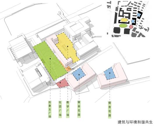 从校园结构的完整性出发,考虑将来与旧楼的功能联系,教室北边设单廊;