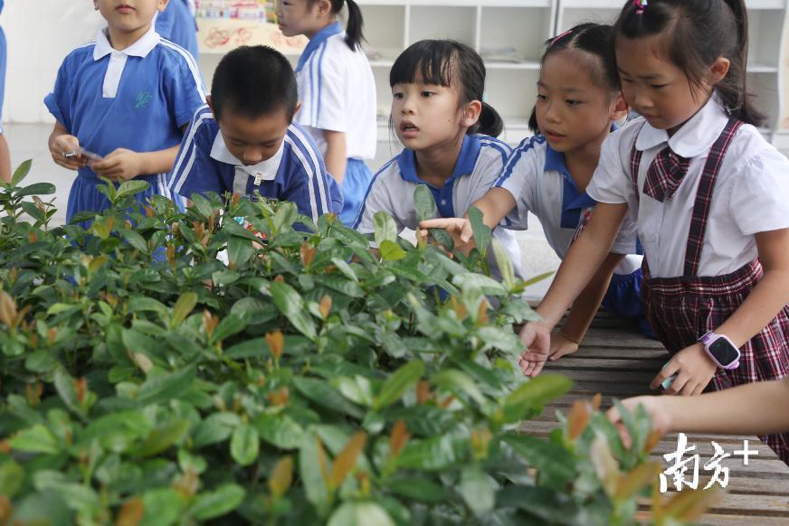 “小学生刚入学会有一两个月的适应期,我就让他们观察校园,观察周围的同学,循序渐进进入正式课程。”深圳小学的周老师负责该校一年级科学课程的开发和教学,她表示,在新课标下的一年级科学课重视实践和体验,“虽然我们使用的是全国统一教材,但会在教学大纲的基础下对课本内容进行调整,根据当地的天气和季节选择合适的观察对象,比如先观察校园里的花花草草。”