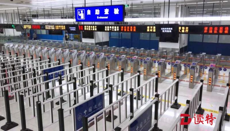 皇岗口岸出境大厅新建24条自助查验通道整齐规范、标识明显。