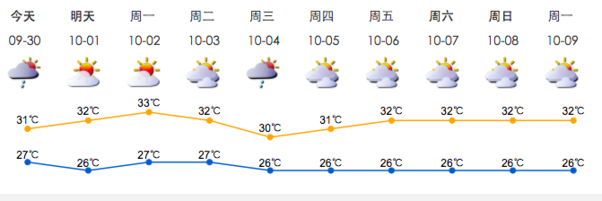 我市多云间阴天,有阵雨或雷阵雨;气温27-31℃;东风2-3级;相对湿度60%-90%