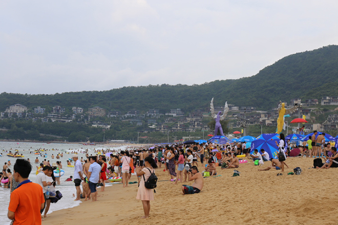 记者采访发现,从宝安、龙华、坪山前来大梅沙的游客已于8时前抵达。“节假日嘛,大家都要出来玩,人当然就多啦。而且,人多才有节日的氛围嘛。”从宝安过来的陈先生认为,节假日期间,大梅沙海滨公园游客多很正常,所以他们一家早早就开车过来,避免被堵在路上。