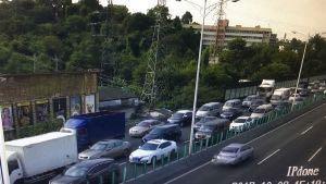 【15:38进城车流高峰杀到广清广佛高速入城处开堵了】