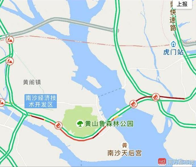广州交委大数据预测,昨天下午是出行返程入城高峰,北环高速双向广北桥路段、北二环高速东行天鹿园隧道路段、莞佛高速双向虎门大桥路段、华快南行春岗立交路段、机场高速北延线南行太成路段行车缓慢。