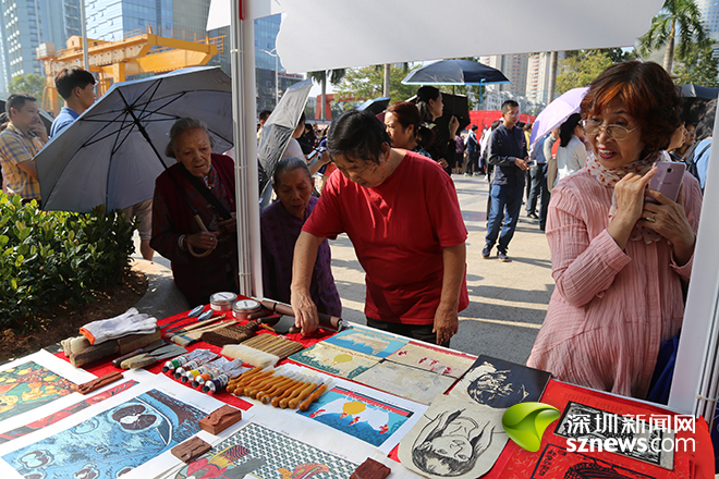 活动现场,盐田区行政文化中心广场上人头攒动,居民们扶老携幼,快乐游园。广场上20多块展板展示着全市及各区的社区建设成果、基层社会治理创新实践等内容;舞台上,吹拉弹唱、民间艺术表演让人目不暇接;剪纸、捏面人、版画、扎染、糖画等非物质文化遗产展台让居民领略了传统技艺的魅力;客家盆菜及疍家美食等则让现场居民大饱口福。