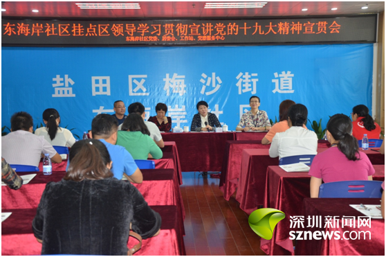 深圳新闻网讯 “国家强则百姓强,我们的生活将更加幸福美好……”日前,东海岸社区党群服务中心30多余名党员居民和社区工作人员认真聆听了区人大常委会副主任、区党代表常淑安关于十九大精神的专题宣讲辅导,区人大教科文卫侨工委主任郭宝铭,区人大常委会专职委员许丽新、市人大代表王军陪同参加活动。代表们一行还调研了近期社区宣传贯彻党的十九大精神各种做法及学习成果。