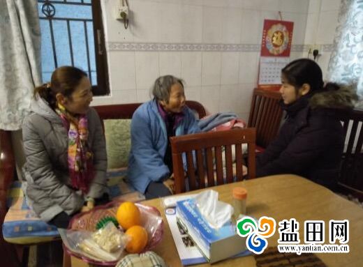 从陈老伯家出来以后,社区工作站工作人员马不停蹄来到80多岁独居老人李晚娇家,韦琴见到李阿婆,用客家话向她问好,并坐下来握着李阿婆的手,和她唠起了嗑:"晚上睡觉被子够不够暖?衣服厚不厚实?下雨天买菜方不方便?冷天身体状况如何……"当得知有隔壁邻居会在下雨天气帮李阿婆买好菜并送来给她时,韦站长放心地点点头说:"那就好!那就好!"韦站长陪着阿婆聊了半个多小时,眼见临近中午时分,为了不耽误她的吃饭时间,大家起身准备离开,李阿婆依依不舍地把大家送到门口,一再叮嘱说:"谢谢大家天冷下雨还来看我,你们也要注意身体啊!"看到李阿婆露出了开心的笑脸,工作人员放心地离开了。