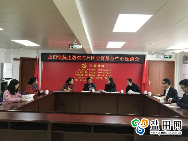 深圳新闻网讯(记者 陈蓉 通讯员 严晓静)1月15日下午,盐田法院法官孙小玲一行到东海社区党群服务中心进行走访座谈,社区人大代表、治安专干、人民调解员等参与了座谈。