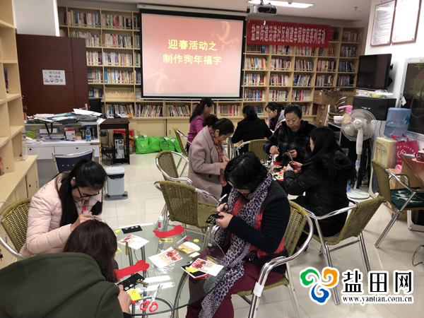 活动开始之前,社区生育文化中心管理员为每个参与活动民居准备了制作工具和材料,并将预先打印好的制作程序发给大家,随后现场演示如何制作。看完演示后,大家都迫不及待的动手自己制作起来。在手工制作的过程中,大家互相讨论如何黏贴会让狗狗看起来生动可爱,如何撒金粉会比较漂亮啊等等,很快一个个狗年福字贴在居民们的巧手下就制作完成了。