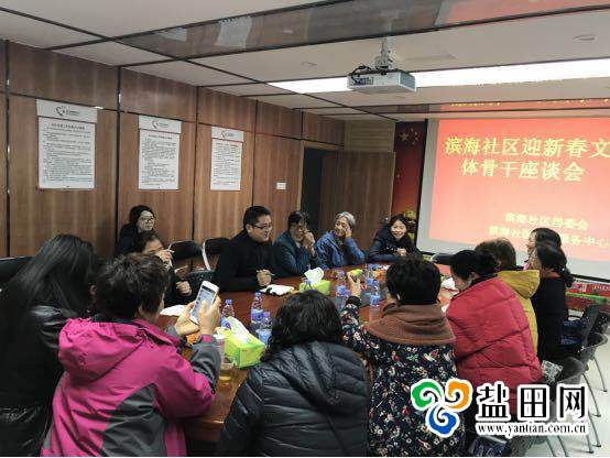 会议伊始,滨海社区居委会委员杨洪涛首先向一直以来热心参与社区文化活动的文艺骨干们表示衷心的感谢,并就去年社区开展的各项文艺活动情况进行了总结汇报,与会人员随后针对新一年的服务展开了热烈的讨论,大家纷纷献计献策,畅所欲言。杨洪涛鼓励社区文艺骨干继续发扬热心参与社区文化活动的奉献精神,并希望社区文化团队在新的一年里能够继续壮大,为丰富社区居民的文化生活贡献力量。