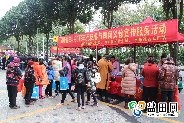 深圳新闻网讯(记者 邓雪婷 通讯员 冯薇 黄锦鹏)2018年2月7日下午,盐田区妇幼保健院联合海山街道计生科及田东社区工作站,在田东社区广富百货广场开展以“健康盐田”为主题的义诊服务活动,为辖区居民送去“新春健康大礼包”。