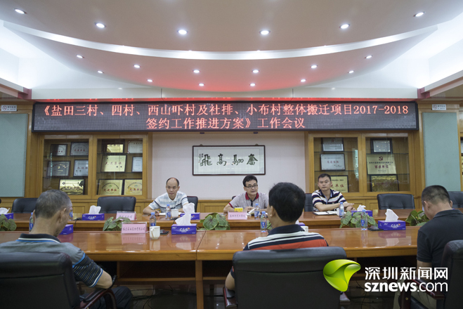 盐田街道召开盐田三村、四村、西山吓村及社排、小布村整体搬迁项目2017—2018签约工作会议。