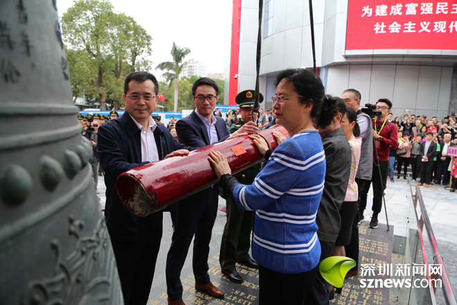 深圳新闻网讯(记者 郑创彬 邓雪婷 潘峰)“铛、铛、铛……”3月18日上午,伴随着18声低沉悠远的钟声响起,“中英街3•18警示日”鸣钟仪式在中英街历史博物馆广场举行。盐田区委书记杜玲,深圳市委宣传部副部长、文明办主任吴定海,深圳市关工委常务副主任高兴烈等一起登上警世钟亭,共同敲响了18声浑厚的警世钟声,警示人们勿忘国耻,振兴中华。